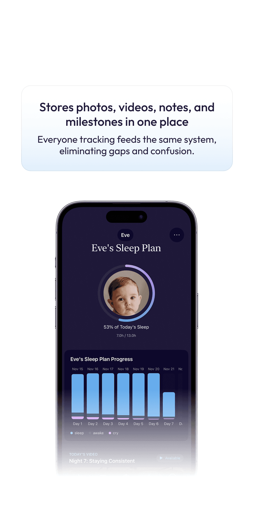 See routines and growth clearly to spot patterns early and parent with confidence.